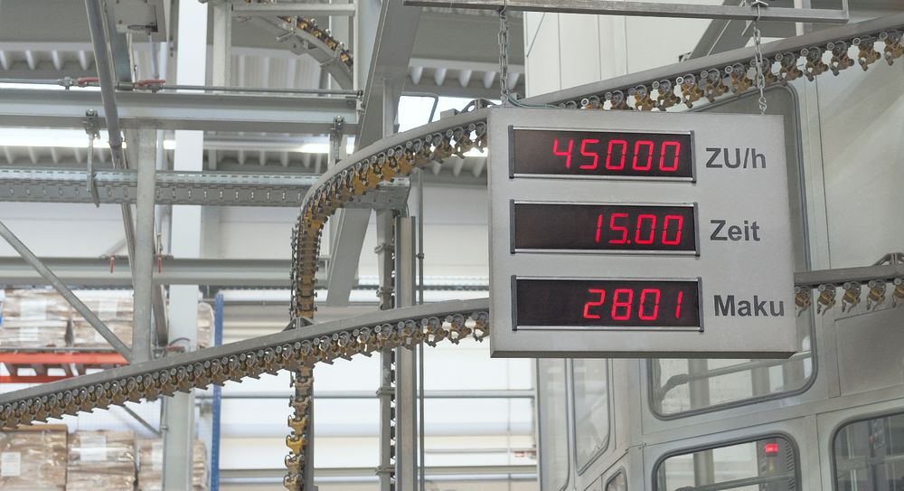 In den bis zu 50m langen Druckmaschinen können bis zu 50.000 Bögen pro Stunde 4/4-farbig und maximal 5/5-farbig bedruckt werden.