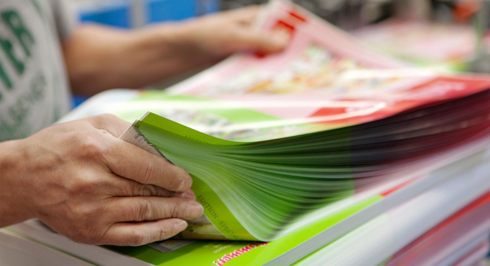 In der Druckweiterverarbeitung werden die Druckbögen gefalzt, geheftet und klebegebunden, damit schlussendlich das fertige Produkt in Topqualität vorliegt.